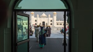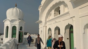 बस से उतरते ही पुनः सैनिकों ने घेर लिया ,सारे प्रपत्र देखे फिर एक कंटीले तारों से घिरे गेट से हमें गुरुद्वारे के अंदर प्रवेश करने का इशारा किया गया।अब हम लाखो सिखों,भारतीयों की चिर प्रतीक्षित चाह ,पवित्र गुरुद्वारे के अंदर थे।