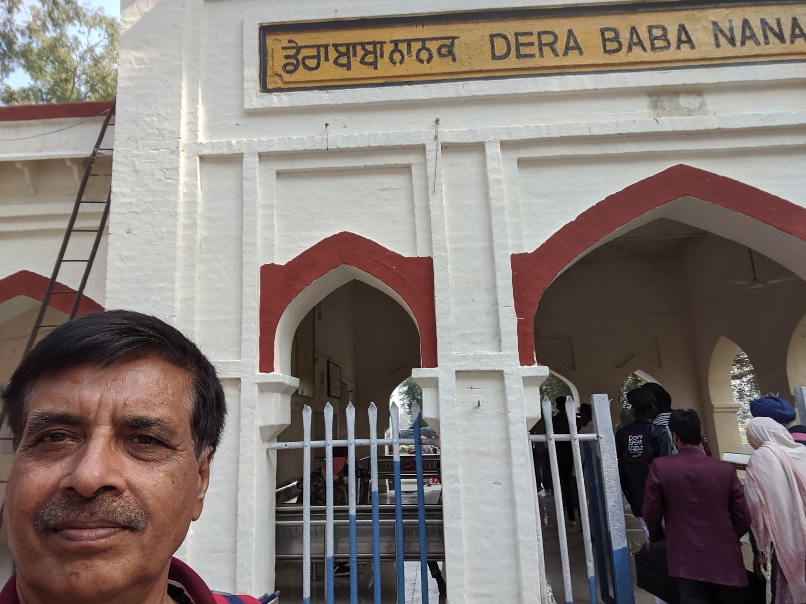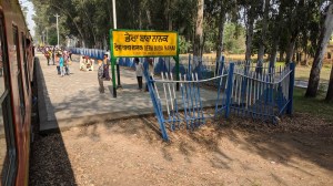आखिर कार इस 2 घंटों की हिचकोले वाली यात्रा का समापन डेरा बाबा नानक स्टेशन पर हो गया।छोटा सा एक कमरे वाला स्टेशन,चारों तरफ खेत ही खेत ,परन्तु करतारपुर बार्डर कहीं नजर नहीं आ रहा था।स्टेशन से बहा आते ही कुछ बसें खड़ी थी ,पता चला कि ये डेरा बाबा नानक गुरुद्वारे की तरफ से ,दर्शनार्थियों को गुरुद्वारे तक ले जाने के लिए खड़ी थी।हमने जब कहा की हम तो करतारपुर जाने के लिए आएं हैं तो सहर्ष ही सब हमें इधर से 10 की . मीटर दूर स्थित करतारपुर बॉर्डर पर पहुंचाने के लिए तैयार हो गए।