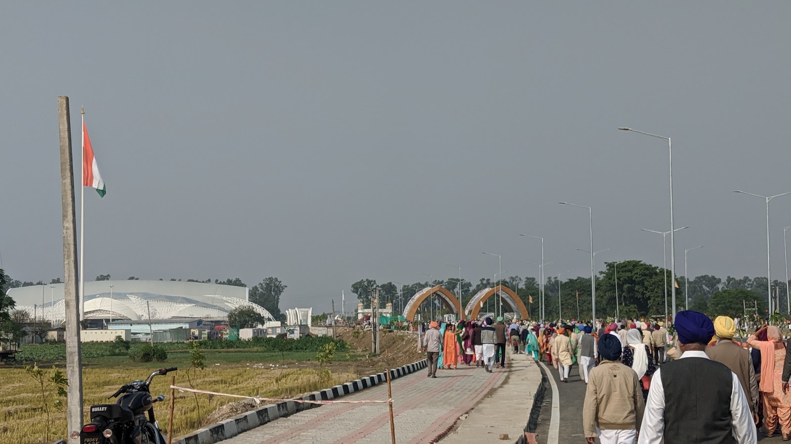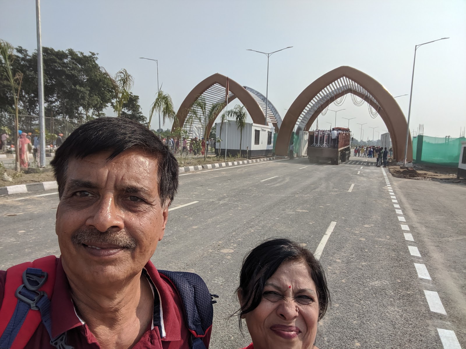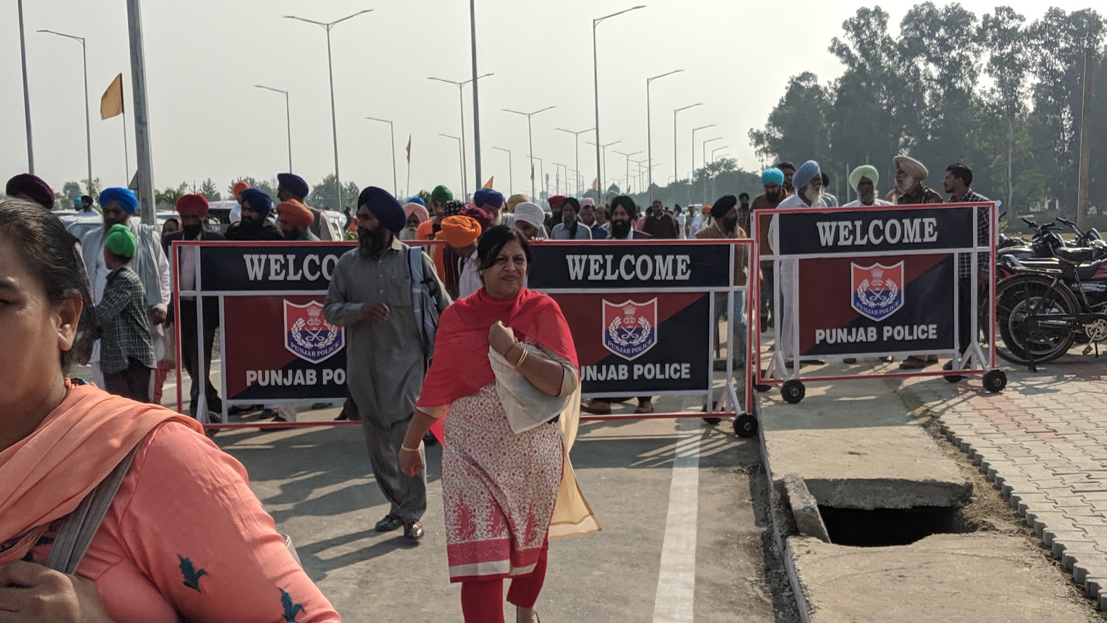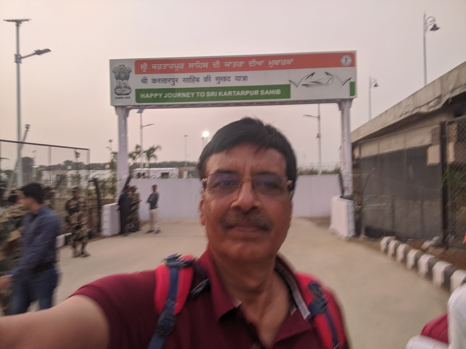 एक मुख्य सड़क के चौराहे पर पुलिस की टीम ने सारे वाहनो को रुकवा दिया।अब लगभग 2 क़. मीटर और पैदल ही चलना था,तब दूर दिखते बॉर्डर तक हम पहुंच पाते।चलते हुए देखा कि यहां तो झुंड के झुंड बॉर्डर की तरफ बढ़े चले जा रहें हैं।क्या बात है ,क्या ये सभी करतारपुर बॉर्डर के लिए जा रहे हैं लगता है जैसे सर पंजाब ही यहां जमा हो गया है ।दूर विशाल भारतीय तिरंगा शान से लहराता हुए दिखाई दे रहा था , और दिखाई दे रहा था उस से भी दूर बॉर्डर के किनारेबने विशाल ,बड़े बड़े गोल गोल गेट ,साथ ही विशाल , आधुनिक इमारतें ।समझ आ गया कि यही कोरिडोर में जाने का मार्ग है। चलते चलते जब विशाल इमारतों के समीप पहुंचे तो देखा कि चारों और बी एस एफ के जवानों का घेरा ,पूरी मुस्तैदी के साथ लाखों कि संख्या में उपस्थति भीड़ के नियंत्रण में लगा था।मार्ग ऐसा जैसा की नोएडा एकस प्रेस हाई वे ! मार्ग के अंत में विशाल बंद दरवाजे ओर उन के समीप खड़े सेना के जवान ,सारी भीड़ को मार्ग के एक किनारे की तरफ जाने के लिए कह रहे थे ,हमें भी उन्होंने उसी तरफ जाने के लिए संकेत किया,परन्तु हमें समझ में आ रहा था कि बॉर्डर का ऑफिस तो दूसरी ओर है,उस ओर वे किसी को भी नहीं जाने दे रहे थे।आखिर कार मैने एक जवान से कहा कि हमें तो आज करतारपुर कोरिडोर होते हुए पाकिस्तान जाना है , और हमारे पास इस हेतु पत्र भी है तो वो चोंका और बोला ,दिखाओ, तो हमने प्रपत्र यात्रा संबंधी दिखाए।तब उसने कहा कि ठीक है आप लोग इस तरफ जो बड़ी इमारत देख रहे हैं वो इमिग्रेशन ऑफिस है आप इस तरफ जाइए।मैने हैरानी से पूछा कि ये शेष लाखों लोग दूसरी ओर किस लिए का रहें है तो उसने कहा कि जिन लोगों के पास कोरिडोर जाने के लिए उचित प्रपत्र नहीं है वे सारे लोग सामने ,बॉर्डर के एक दम किनारे पर लगी दूरबीन की तरफ जा रहे हैं , जहां से वे दूरबीन के द्वारा ,दूर ही से करतारपुर गुरुद्वारे के दर्शन कर रहें है ! आप भाग्य शाली हैं कि आप पहले ही दिन साक्षात कोरिडोर से होते हुए करतारपुर गुरुद्वारे पहुंच कर गुरु नानक जी के निर्वाण स्थल के दर्शन करने जा रहे हैं।