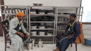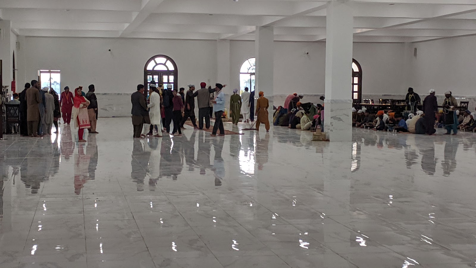 अगर किसी को किसी भी धर्म की श्रद्धा का परिचय लेना हो तो उसेउस धर्म के भोजन वाले स्थान का जायजा लेना चाहिए।निश्चिंत ही भोजन की सेवा को सेवा सिख धर्म में ,उनके गुरुद्वारों में उनके सेवकों द्वारा कि जाती है ,उसकी तुलना में कोई भी धर्म नहीं टिकता है।लंगर में पहुंचते ही हमने देखा कि एक अत्यंत विशाल हाल जो की पूरी तरह से संगमरमर से निर्मित था उसमे श्रद्धालुओं केजा।इं बैठने के लिए टाट की दरिया बिछी हुई थी। श्रद्धालु एक एक करके बैठते जाए थे तुरंत स्वयं सेवक थाली ,कटोरी एवम् गिलास दे देते थे ,फिर तुरंत ही दाल ,चावल ,रोटी परोसने वालेस्वयं सेवक आ जाते थे।जितना खाना है छक कर खाइए ,वे ,बड़े ही प्रेम और श्रद्धा से भोजन करते थे। और तो और ,भोजन समाप्त होते ही जूठे बर्तन स्वयं ले कर धोने चले जाते थे। यात्रीको तो वे कुछ करने ही नहीं देते थे।भोजन का कोई समय नहीं ,आइये जाइए ,खाए जाइए ,ऐसा दृश्य हमने इस से पहले कहीं भी,कभी भी नहीं देखा था।भोजन से तृप्त हो कर हम फिर एक बार गुरुद्वारे केबहर विशाल मैदान पर ,डूबते सूरज की किरणों में चमकते करतार पुर साहिब गुरुद्वारे को अपलक निहार रहे थे ।हमारे आस पास निकलते श्रद्धालु रुक कर हमसे जरूर पूछ रहे थे कि ” आप इंडिया ” से आए हैं हमारे हाँ कहते ही वेसब हमसे बात करने को बेताब हो जाते थे।