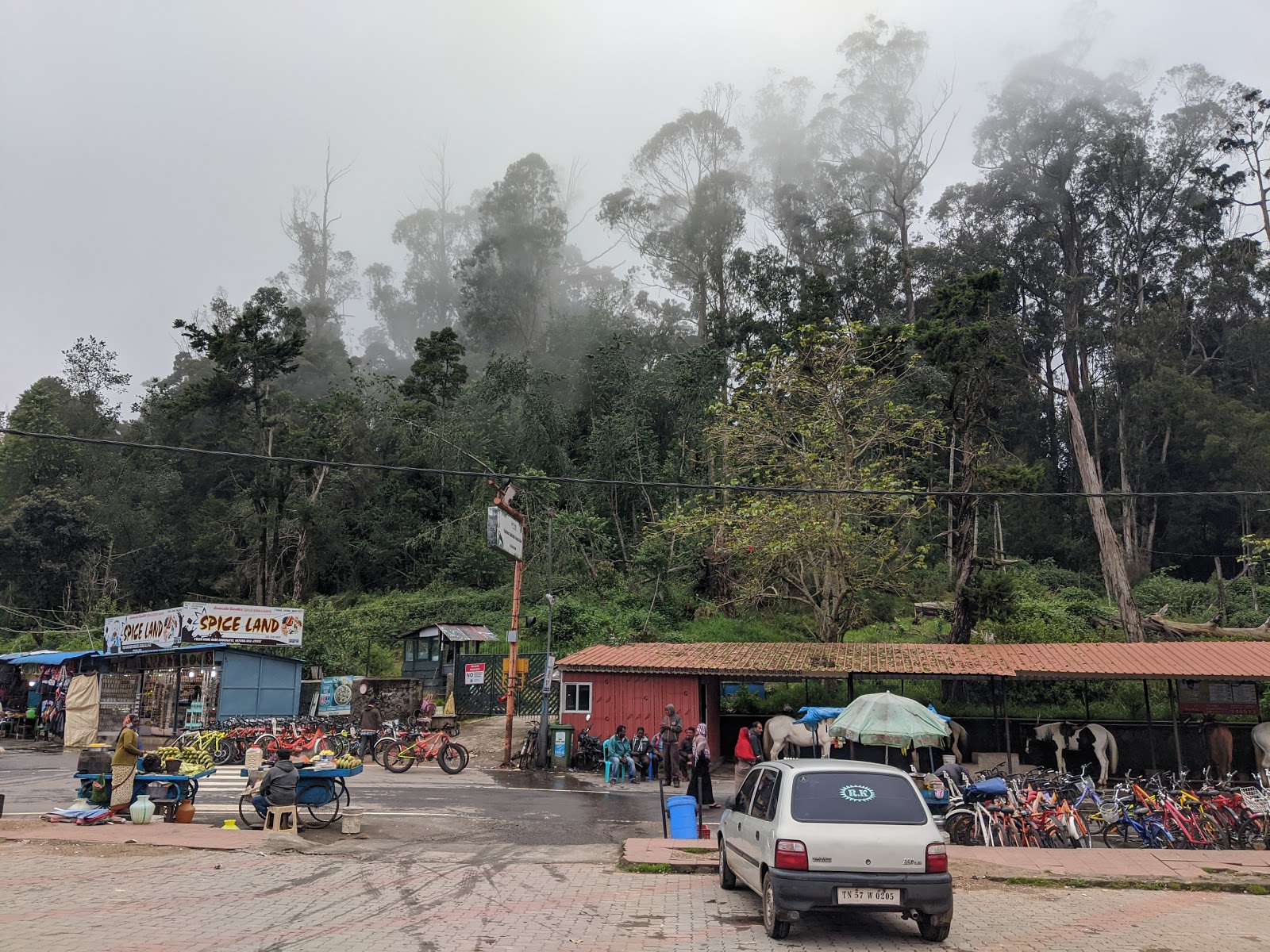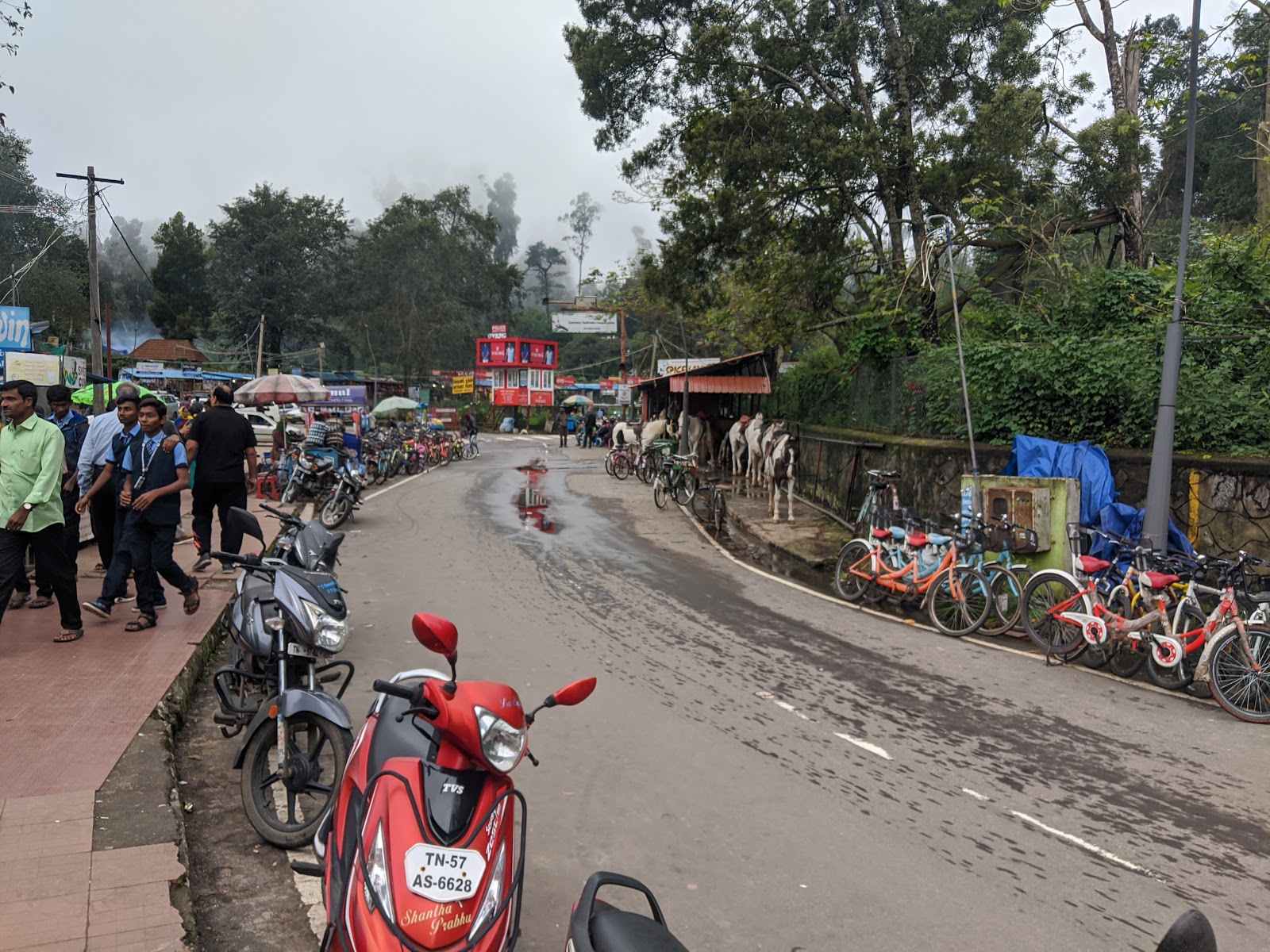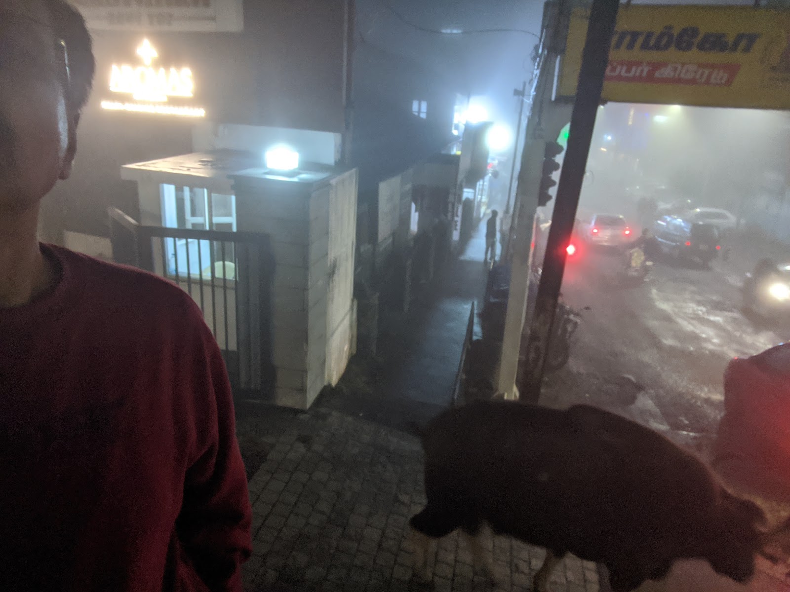 होटल के कमरे में ,शांत और सुकून के साथ मदुरै से यहां तक की यात्रा की थकान को मिटाकर,भोजन के लिए अच्छे रेस्टोरेंट कि तलाश में हम शायद शाम 8 बजे होटल से बाहर निकले ,तो आत्मा जैसे तृप्त हो गई।चारों ओर बादलों की घेरा बंदी, हल्की हल्की महीन महीन नमी से अपने कि भिगोते हम समीप के चौराहे पर जा पहुंचे ।