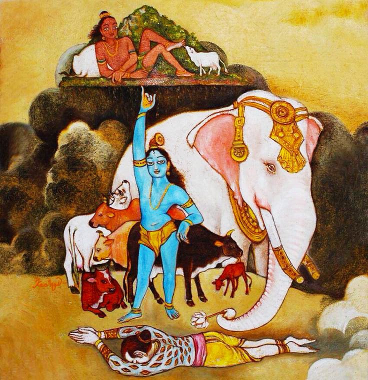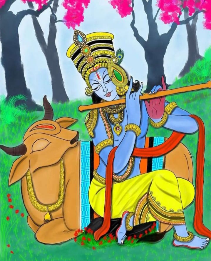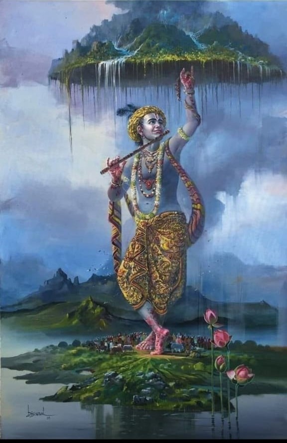 मैं श्री राधा कृष्ण की जुगल जोड़ी को धन्यवाद देते हुए ,गीली हुई धोती कुर्ते को ,निचोड़ते हुए ,इस घटना के बारे में ,जैसे ही सोचने लगा ,तभी मुझे समझ आई ,ओह ! ओह ! अरे ,क्या वो बालक ,कन्हिया तो नही था ? इतने में मुझे स्मरण हो आया ,उसकी पीली फेंट ,बांसुरी ,बालों में लगी ,मोर पंखी । हे भगवान ,ये तो साक्षात श्री कृष्ण ही थे जो मुझे अपनी शरणागत जान ,मुझे ,मृत्यु के मुंह से ,स्वयं बाहर निकालने आए थे ।इतना ज्ञान होते ही , मैं तुरंत ,इस बालक की दिशा की ओर दौड़ा ,पर ये क्या ,दूर दूर तक उनका कोई चिन्ह ही नही था। मैं पागलों की तरह ,धरती पर लोट लोट कर ,अश्रु बहाते हुए ,अपने अज्ञान के प्रति रोष दिखाते हुए , कि वे ,जगत के पालन हार ,स्वयं मुझे बचाने ,मेरे समक्ष आए और मैं मूढ़ ,अज्ञानी ,उन्हे पहचान ही नही पाया ।