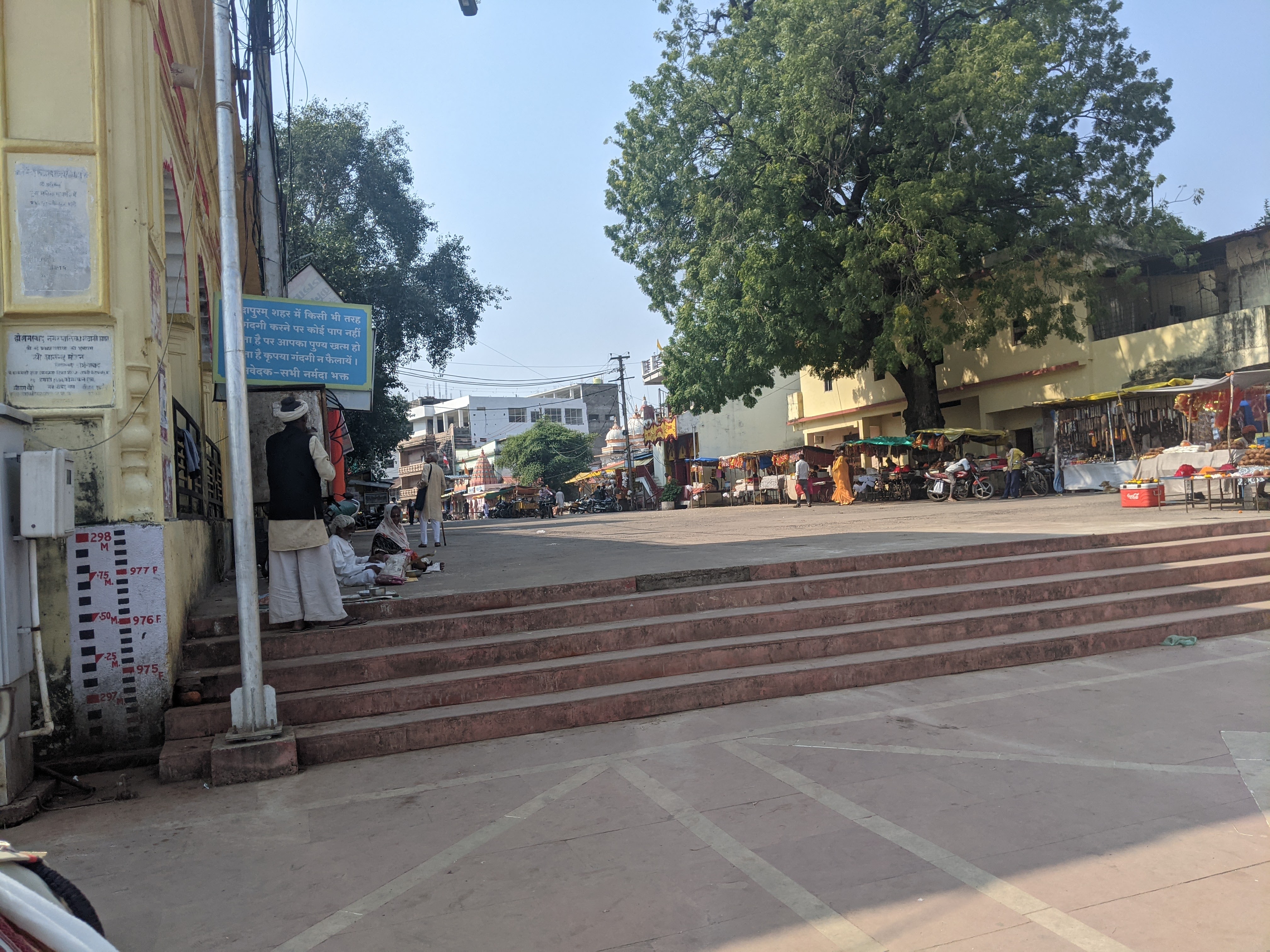 बीस पच्चीस मिनट में ट्रेन ने होशंगाबाद स्टेशन पर उतार दिया ,तब तक सुबह के नौ बज गए थे।दिसंबर के महीने में भी सूरज पूरी चमक बिखेर रहा था , वैसे भी मध्य प्रदेश में सर्दी नही के बराबर पड़ती है ।स्टेशन से सीधे टेंपो पकड़ा ,कुछ ही देर में हम ,पवित्र नर्मदा नदी के घाट पर खड़े थे।