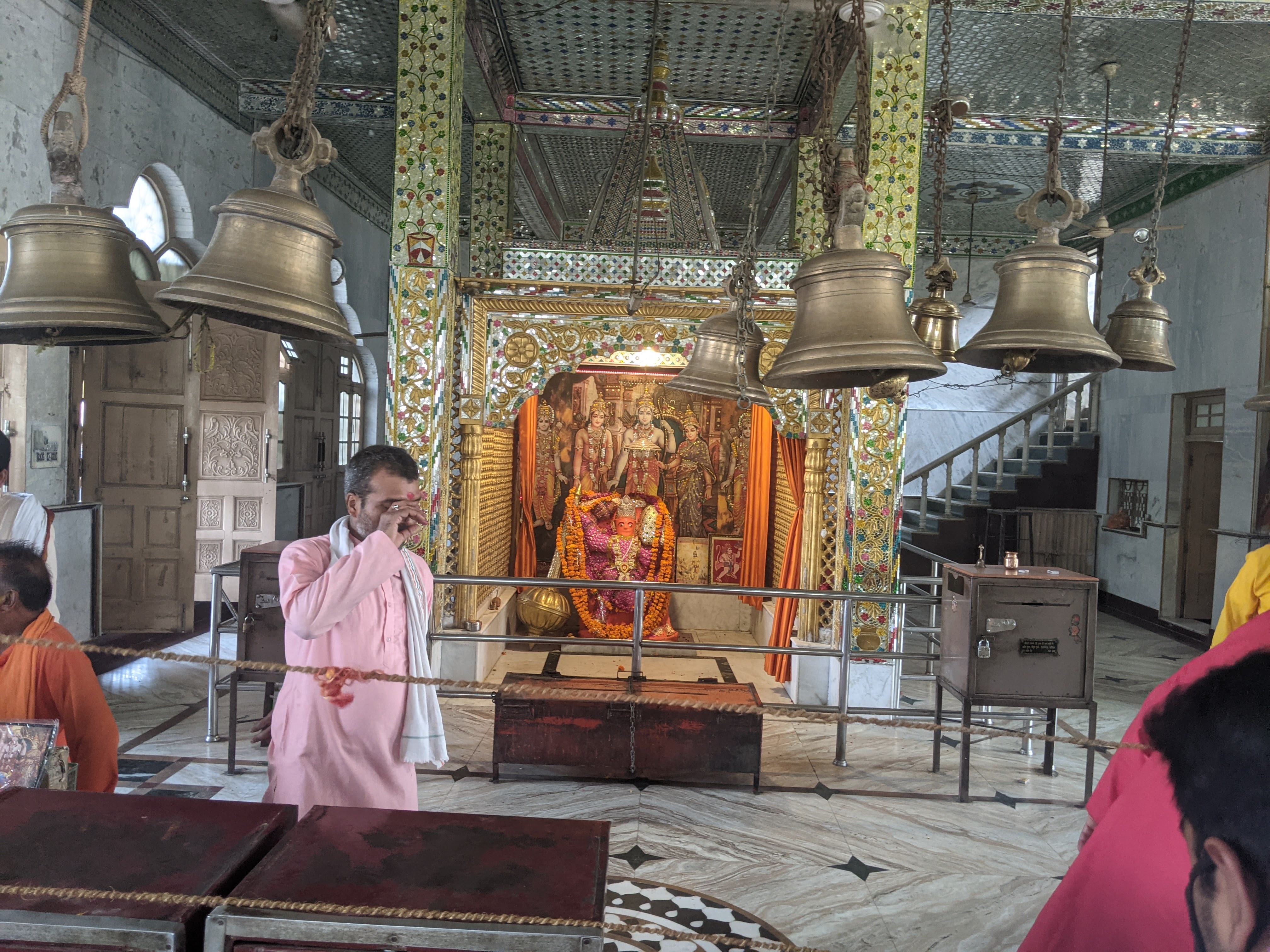 मंदिर के बाहर ही से हमारी पूरी तरह चेकिंग के पश्चात जब अंदर प्रवेश किया तो पाइपों से घिरे मार्ग पर इस भरी दोपहरी में भी दर्शनार्थियों की लंबी पंक्ति लगी हुई थी।धीरे धीरे मुख्य मंदिर जो कि प्रवेशद्वार से सौ फुट की दूरी पर था ,और जिसके दोनो ओर अन्य हिंदू मंदिरों की तरह अनेकों देवी देवताओं की मूर्तियां लगी हुई थी।आधे घंटे पश्चात जब मुख्य मंदिर के पास पहुंचे तो देखा अन्य मंदिरों से भिन्न इस मंदिर की मूर्ति के दर्शन के लिए एक छोटी सी खिड़की है जिसके अंदर खड़ा पुजारी ,दर्शनार्थियों से भेंटपुजा की सामग्रियां लेकर ,कुछ प्रसाद रूप में वापस कर देता था।अब जब तक हम ढंग से मूर्ति को निहारते कि आसपास खड़े सुरक्षा प्रहरियों ने हमें आगे बढ़ने के लिए विवश कर दिया। यानी केवल आधे मिनट में ही जब तक हम अपनी मनोकामना मन ही मन कहते ,हम पंक्ति से बाहर धकेले जा चुके थे। खैर ,थोड़ा बाहर आकर ,सामने जो विशाल आंगन था , जहां हमारी ही तरह अन्य श्रद्धालु दूर ही से हाथ जोड़े ,मन ही मन अपनी कामना की पूर्ति कह रहे थे। अब चारों ओर दृष्टि घुमाई तो सामने कुछ ही दूर पर एक विशाल लेकिन खाली तालाब ,जिसके चारों ओर सीढियां बनी हुई थी नजर आया।मंदिर के दूसरी तरफ अनेकों पुजारी अपने यजमानों के लिए पूजा पाठ में व्यस्त थे ।पुनः एक बार दूर से ही सही ,हमने हाथ जोड़े और बाहर जाने के लिए बढ़ गए।