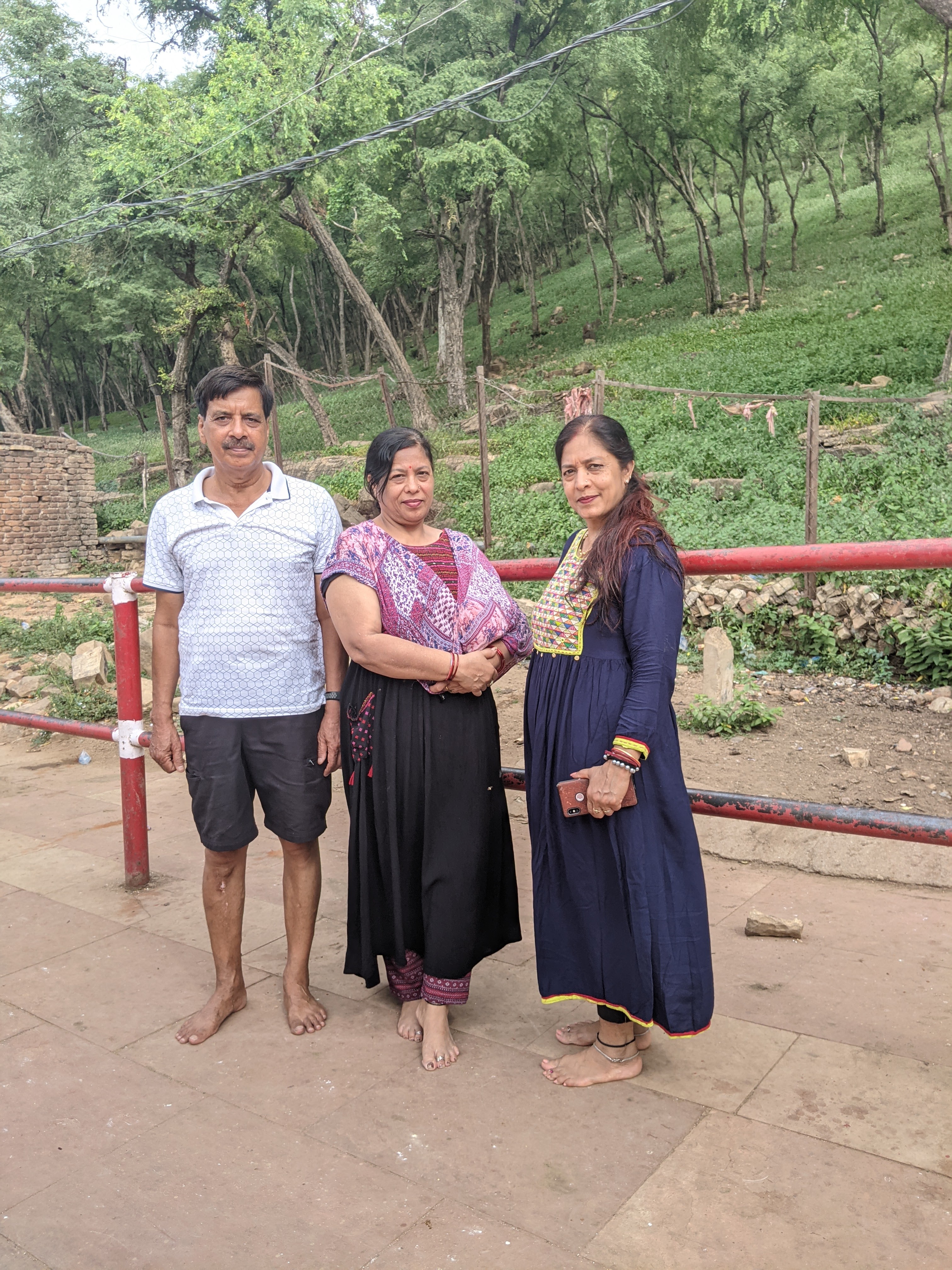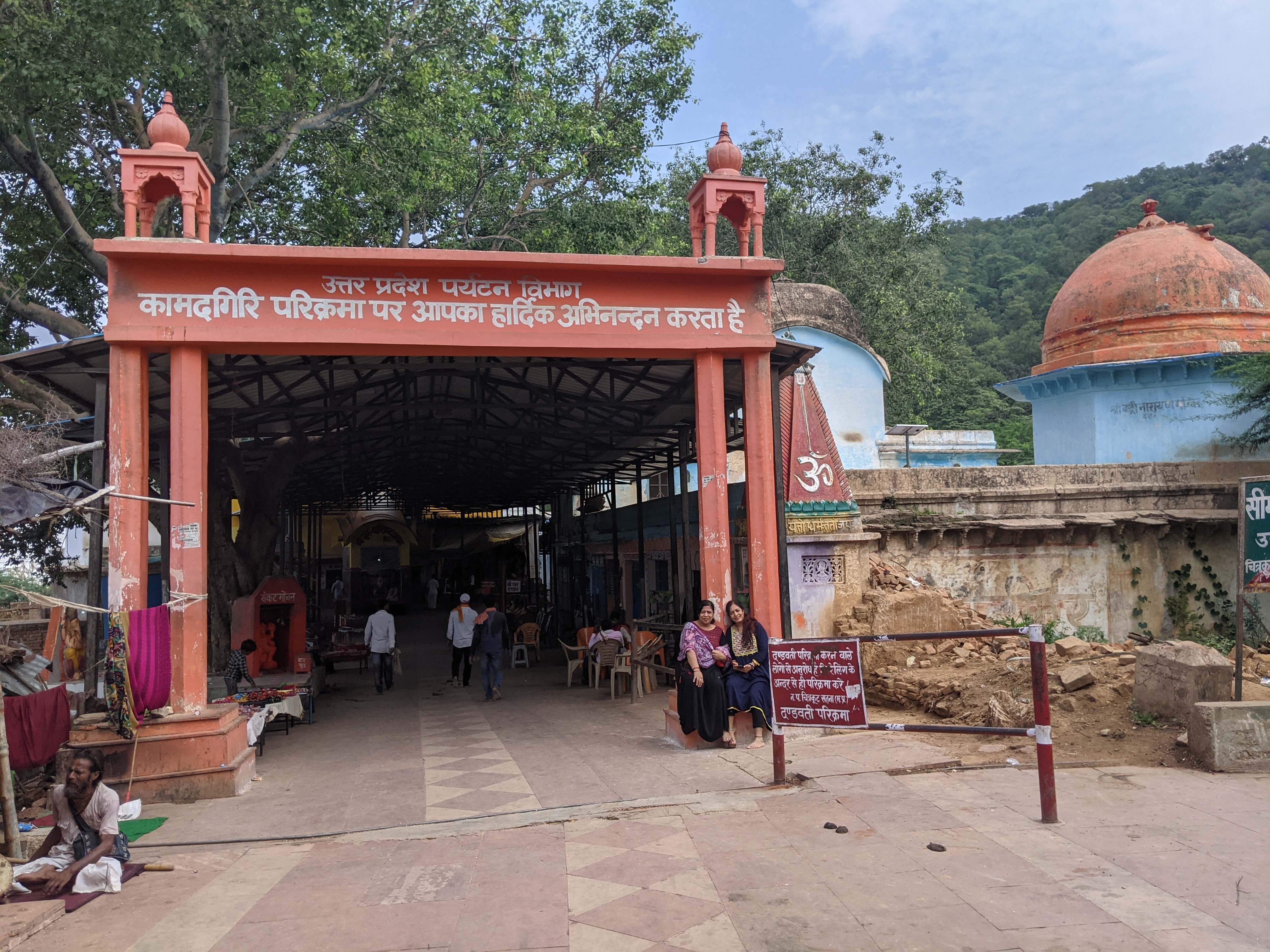 कार से उतर ,थोड़ा पैदल चल , हम यात्रा स्थल के आरंभ में स्थित ,काले रंग में सजे ,भगवान राम जी एवम उनसे अनुगृहत पर्वत “कामदगिरि”की मूर्तियों के दर्शन करने जा पहुंचे।
