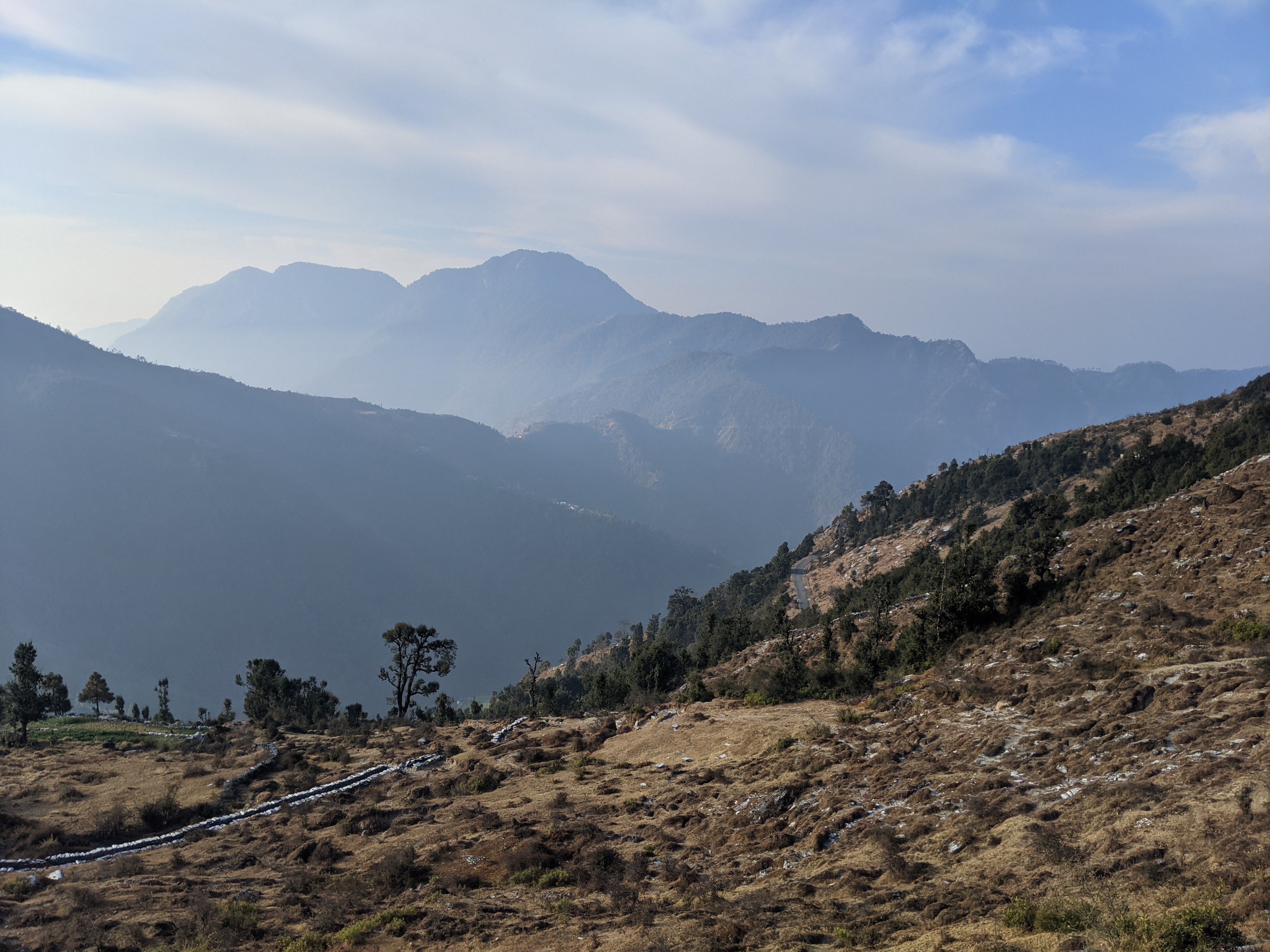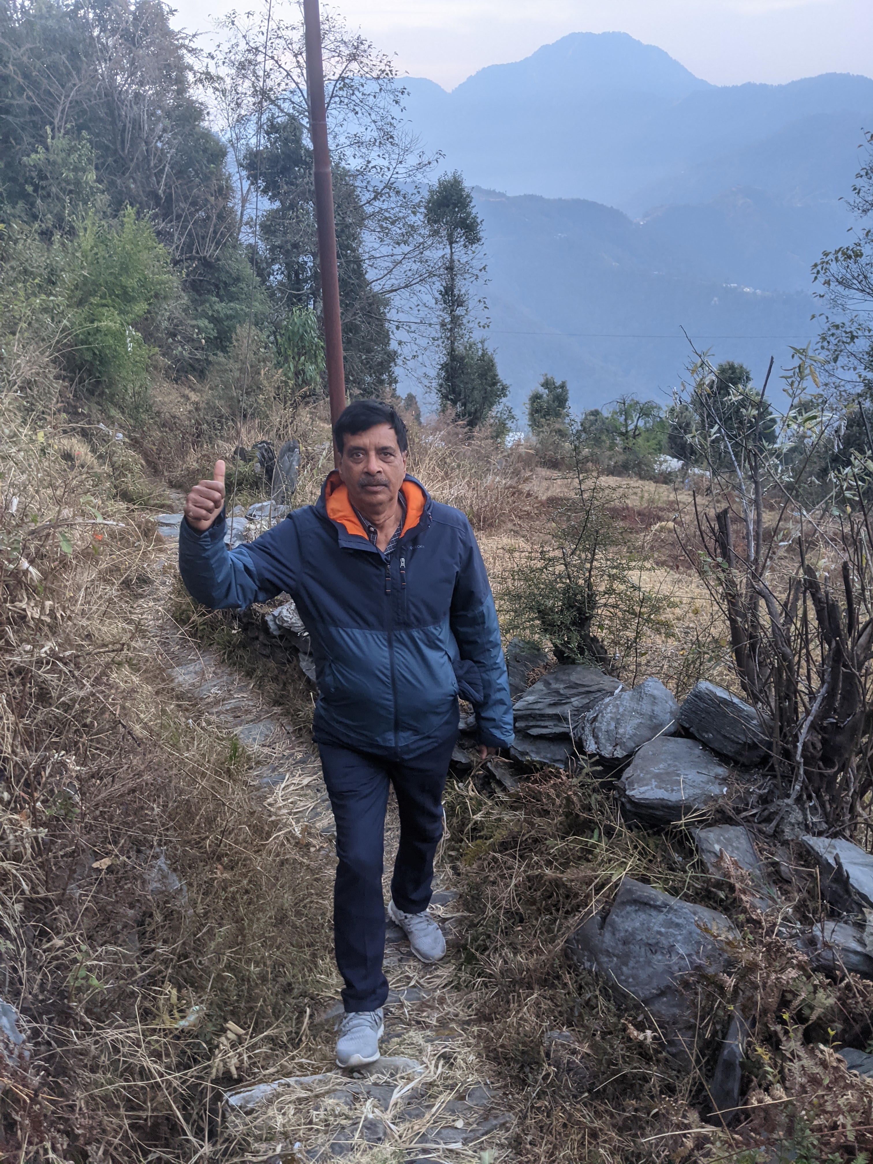 शायद आपको पांच किलोमीटर की दूरी कोई अधिक नही लगेगी ,पर जब सीधे खड़े पहाड़ की चोटी जिसकी ऊंचाई कोई एक हजार फुट की रही होगी ,रास्ता ऊबड़ खाबड़ ,पगडंडी और सीढ़ी नुमा हो,तो ये अनुभव भी जान निकालने वाला ही होगा ,फिर भी शायद ही ऐसा अवसर ,जीवन में कभी दुबारा मिले,साथ ही इस आशा के साथ कि जरूर पहाड़ की चोटी से कुछ अनोखे नजारे दिखें ,हम ने चुपचाप उनकी बात मान ली ।