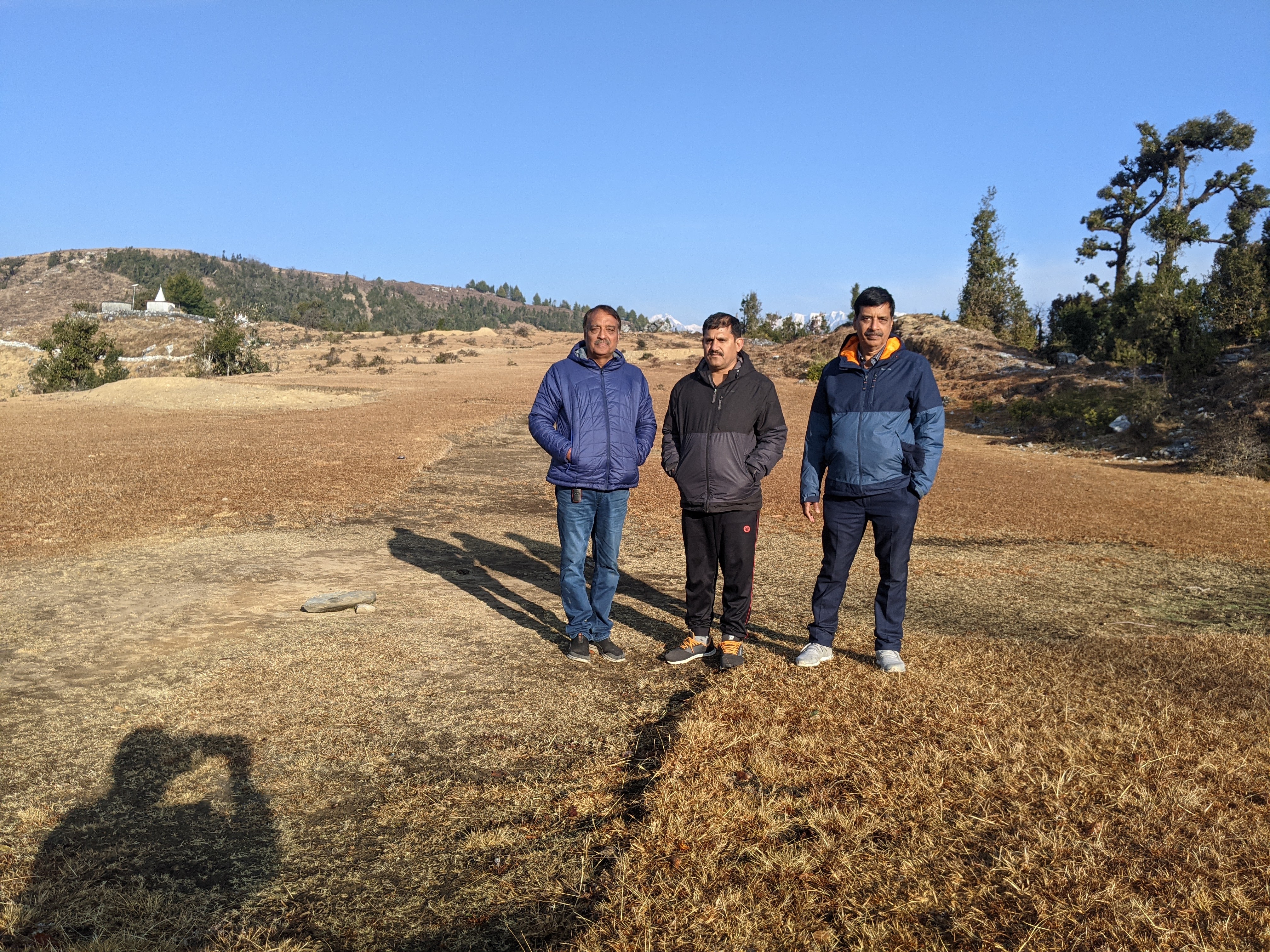आखिर कार जब हम आखिरी कदम रख ,ठीक चोटी पर पहुंचे तो सामने एक अच्छा खासा लंबा ,चौड़ा छोटी, पीली ,सुखी खास का ,थोड़ा समतल ,थोड़ा ऊंचा नीचा, मैदान ,जिसे पहाड़ों में “” बुग्याल “” बोलते है ,दिखाई दिया ।थकान से पस्त हम तुरंत ही घास के ऊपर लम लेट हो गए ।कुछ देर आंख बंद कर ,एक दम शांति ,सुकून का अद्भुत आनंद लिया ,फिर उठ खड़े हुए ।